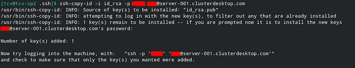 [ user@hostname ]$ ssh-copy -i id_rsa -p <port> <user>@<ssh_server>